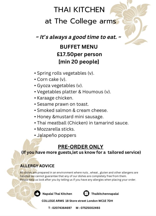 To Book, please email thecollegearms@whelanspubs.co.uk.
